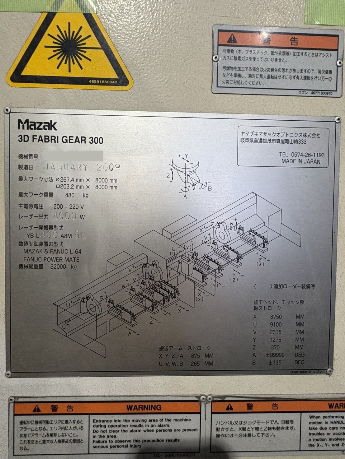 ヤマザキマザック レーザー加工機 3D FABRI GEAR 300